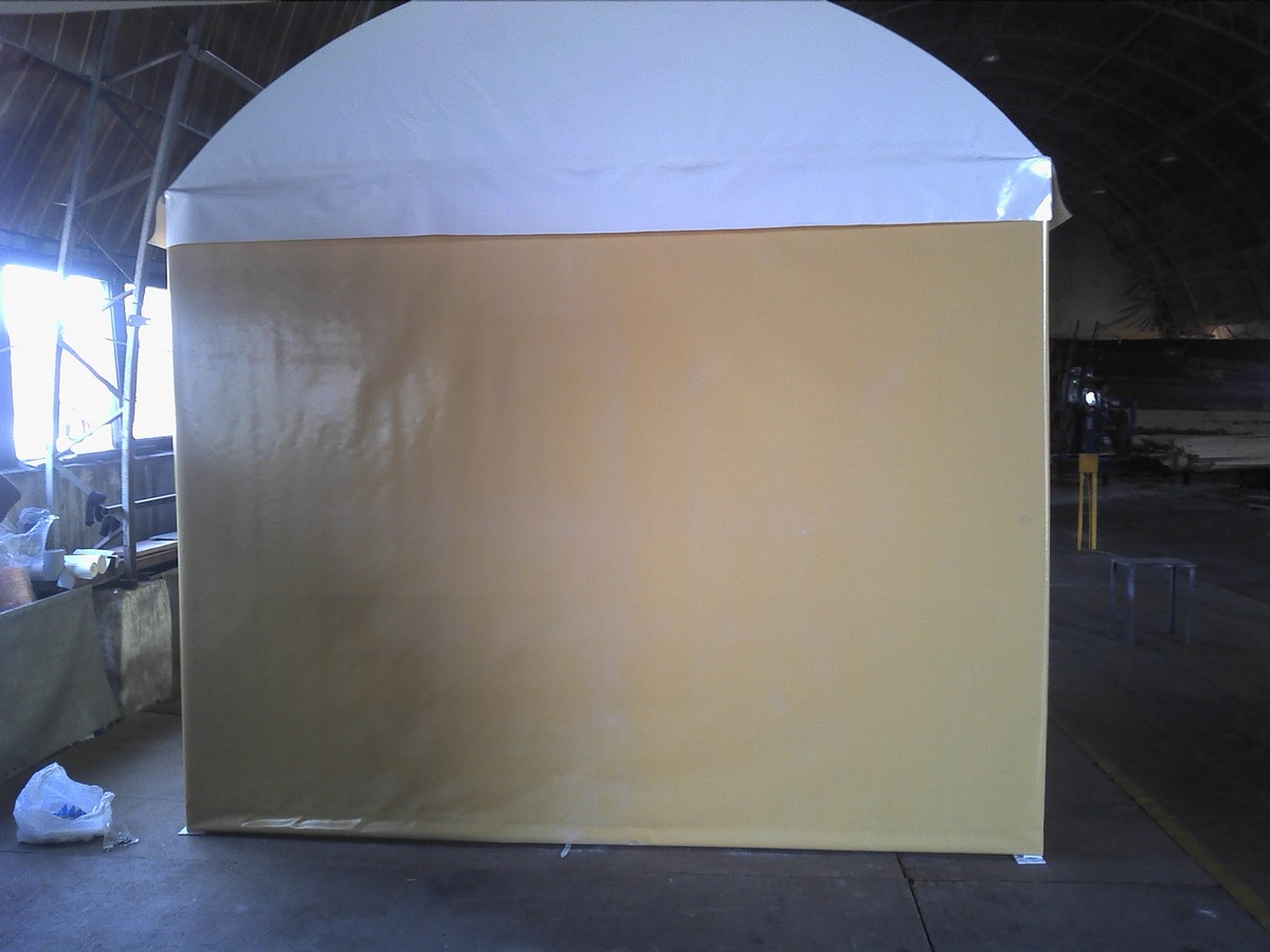 Для изготовления нашей продукции мы используем стальную профильную трубу необходимого сечения и тентовую ткань плотностью 650 гр/кв. м., каркас металлический труба 25*25, 30*30, 40*40.