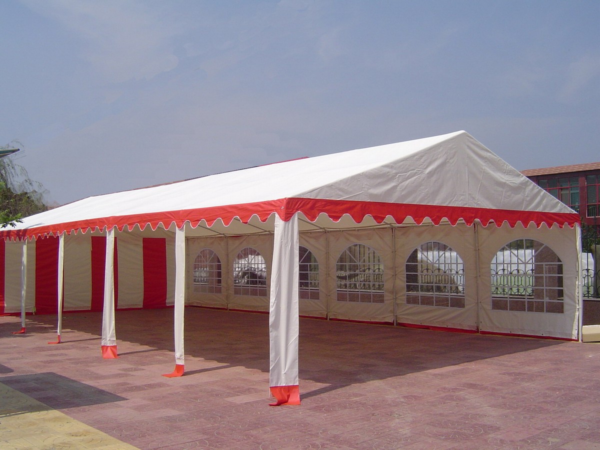 Это самый востребованный вид каркасно-тентовых конструкций для обустройства на отдыхе. Четырехскатная крыша наиболее устойчива к непогоде в виде шквалистого ветра и совсем не задерживает осадков. Тем самым значительно уменьшается нагрузка на тент и увеличивается устойчивость конструкции, позволяет использование в зимнее время и увеличивает срок ее эксплуатации.