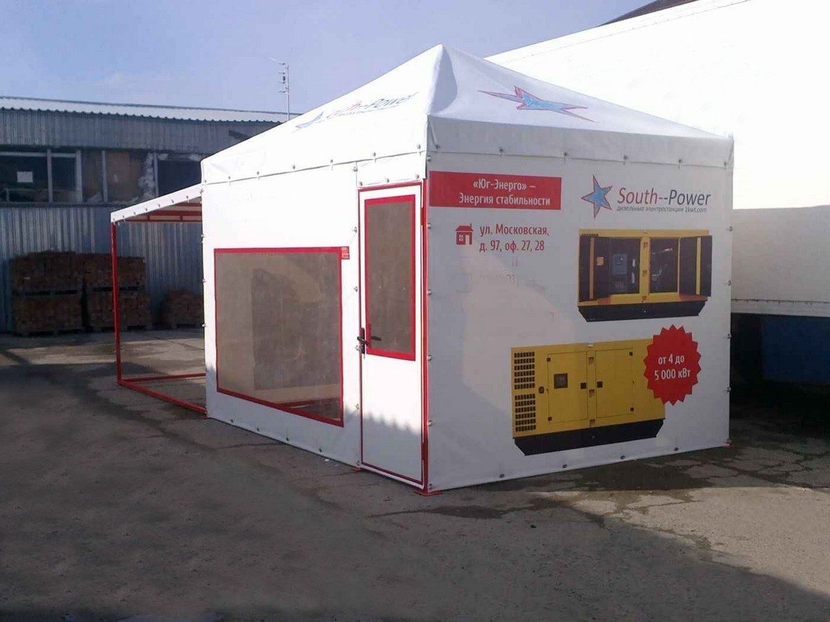 Все стенки шатра являются съемными, соответственно, возможен вариант установки разного количества стенок. Окраска каркаса для рекламных шатров производится с помощью полимерных красок, что способствует приданию ему устойчивости к коррозии.