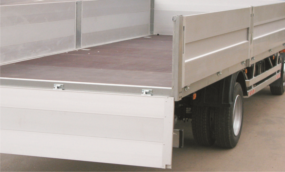 Алюминиевые борта обладают полной устойчивостью к коррозийным изменениям и небольшим конструкционным весом, что повышает параметры полезной загрузки. К тому же анодированный алюминий обладает хорошей прочностью. Вместе с откидными алюминиевыми бортами могут устанавливаться съёмные стойки.