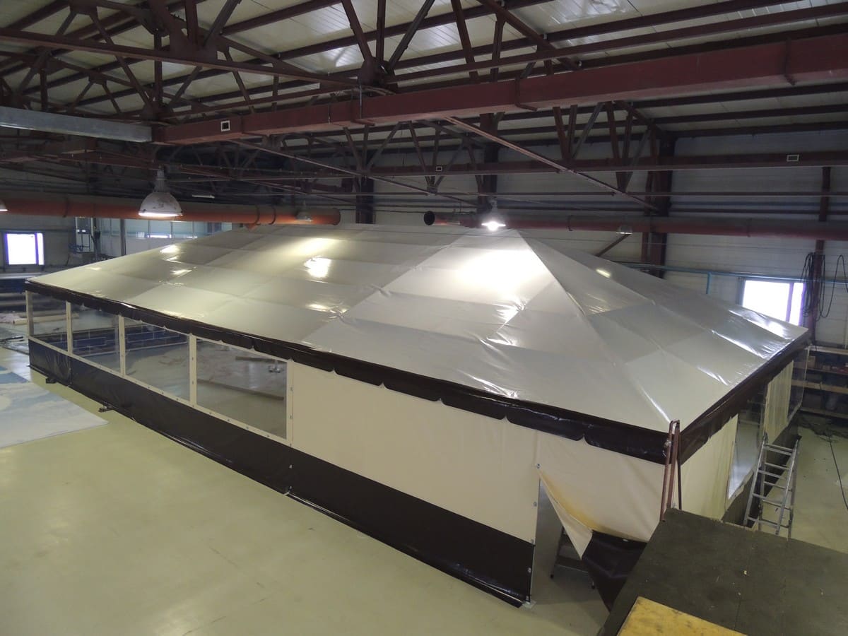 Также на тент может быть нанесено специальное покрытие для рекламы вашей марки. Мы монтируем тентовые установки разных размеров и форм.